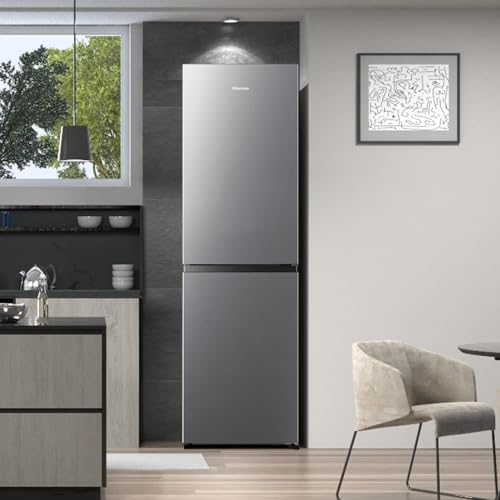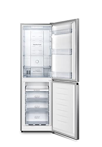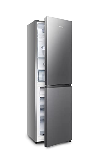 Hisense RB327N4AD2 Combiné réfrigérateur-congélateur – Total No Frost – Multi Air Flow – Largeur 55 cm – Poignée de porte, côté droit, interchangeable – Aspect inox – Angle d’ouverture de porte 90° – Éclairage intérieur LED.