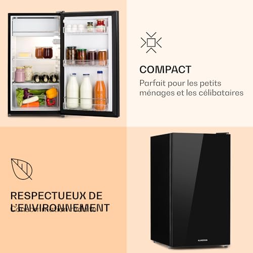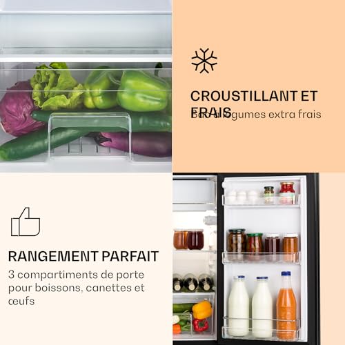 KLARSTEIN Luminance Frost – Réfrigérateur, 91L, 110 kWh/an, 7 niveaux de réglage de la température, Eclairage intérieur, Look moderne, Bac à oeufs, Clayettes verre – Noir