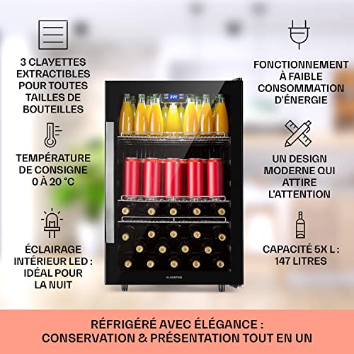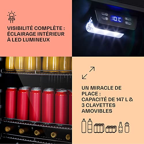 Klarstein Mini Frigo de Chambre et Bureau pour Boisson, Petit Frigo Silencieux, Refrigerateur Mini Bar 147L, Petit Réfrigérateur Camping, Étagères Réglables pour le Vin, Cannette, Beer Fridge