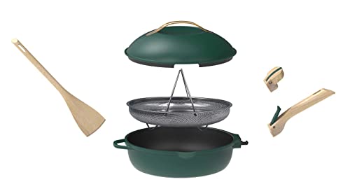 COOKUT – La Fabuleuse poêle 8 en 1 – Un seul ustensile qui remplace poêle, casserole, sauteuse, cocotte – Avec 2 poignées amovibles, panier vapeur/friture, spatule en bois – CANOPEE
