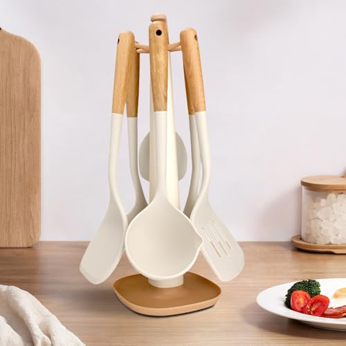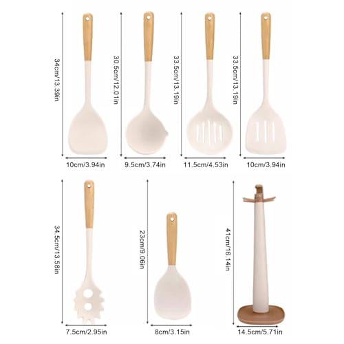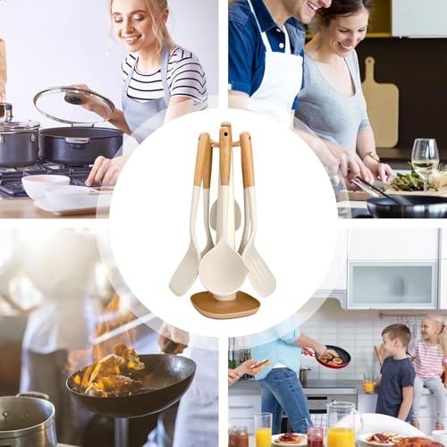Product set: spatula + soup spoon + colander + frying spatula + flour scoop + rice spoon + stand