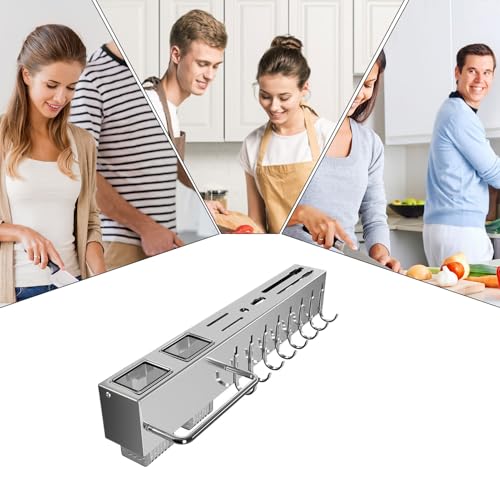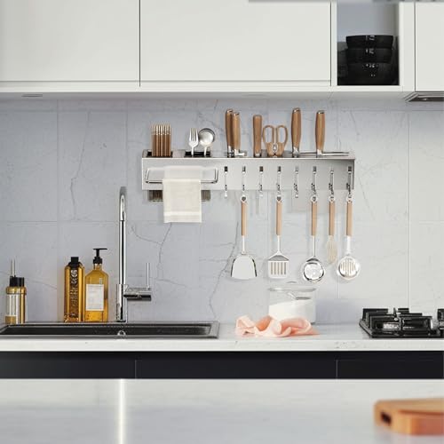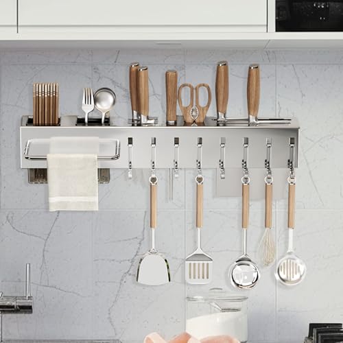 Générique Kitchen Utensil Holder – 50cm Adhesive Kitchen Rail With Hooks | Space Efficient Wall Mount Cooking Tool Holders, Stainless Steel Dangling Utensil Holder For Home, Bathroom, Living Room