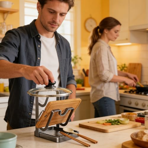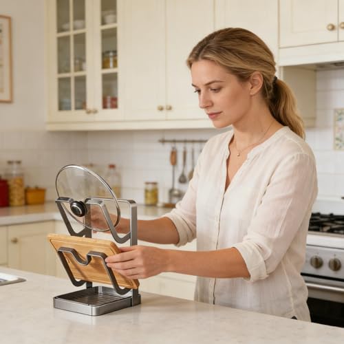 Space Optimization: With its ability to store pot covers upright, this rack minimizes horizontal clutter, creating more usable counter space while maintaining an orderly appearance, especially beneficial in smaller cooking environments