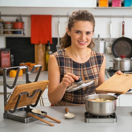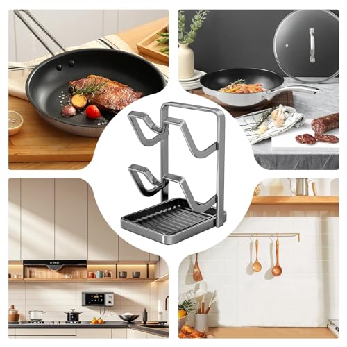 Heat-Resistant Lid Rack: Designed with a heat-resistant 304 stainless steel frame, this lid rack ensures stability even when exposed to high temperatures, protecting your kitchen tools from damage; the non-slip silicone pads add extra safety by keeping the rack securely in place during daily meal preparations