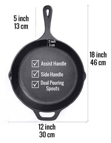 CRÉEZ LES MEILLEURS REPAS DE DÉGUSTATION – Avec cette poêle / poêle en fonte pré-assaisonnée de 12 pouces / 30 cm. Idéal pour cuisiner à l’intérieur sur la cuisinière ou le four et à l’extérieur avec des feux de camp ou des barbecues. La poêle / poêle à frire est d’une taille parfaite pour faire frire des viandes, faire sauter des légumes, faire frire des œufs, cuire du poisson, des hamburgers, de la paella, des fajitas, des frittatas et faire des pancakes / crêpes. Une poêle à steak idéale. Parfait pour la cuisine intérieure et extérieure.