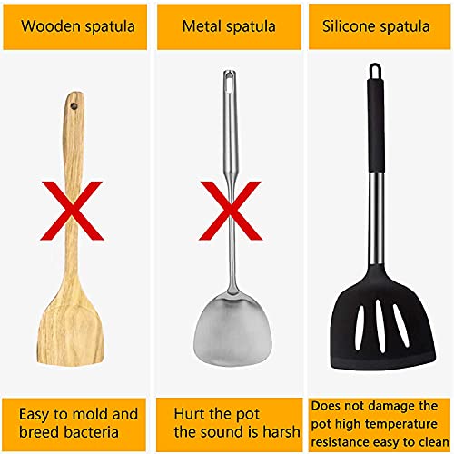 【Durable et résistant à la chaleur】 Notre ensemble de gadgets de cuisine en silicone est extrêmement résistant à la chaleur de -40 ° F à -480 ° F.Vous n’avez pas à vous soucier de la fonte si vous le laissez accidentellement dans la casserole pendant un certain temps.La poignée en acier inoxydable,qui est recouverte d’un manchon en silicone à l’extrémité,évite les brûlures,ne se plie pas et ne casse pas sous une forte pression.