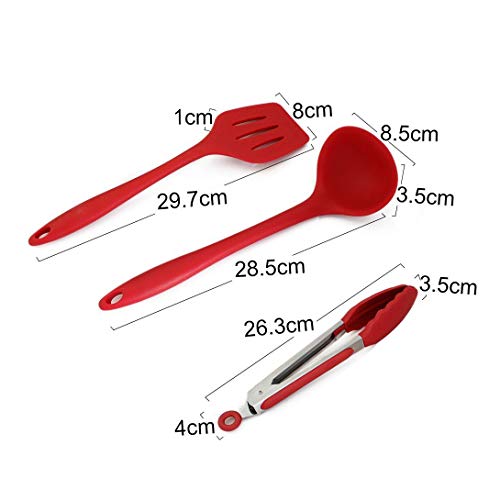 Set de 10 Ustensiles de cuisine en silicone – Pinces, Fouet, Brosse, Spatule, Cuillère, Noodle Spoon, Slotted Spatula, Riz Paddle, Cuiller à soupe, Résistant à la chaleur Utensil de Cuisson