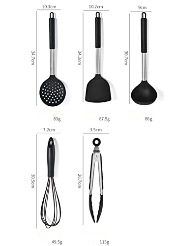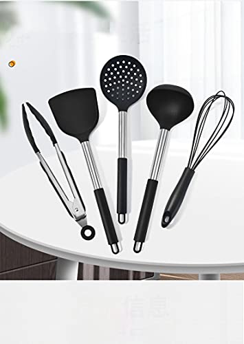 5 Silicone Cooking Utensils Kitchen Utensil Set -Kitchen Utensil Sets for Nonstick Cookware Black Kitchen Tools Spatula with Stainless Steel Handle