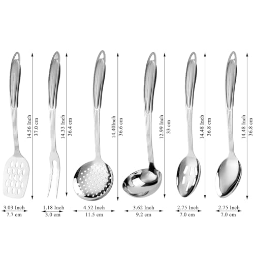 Berglander ustensiles de cuisine en acier inoxydable 6 pièces, gadgets de cuisine essentiels un spatules en métal, écumoire, louche, cuillère de service, cuillère à fentes, fourchette à découper