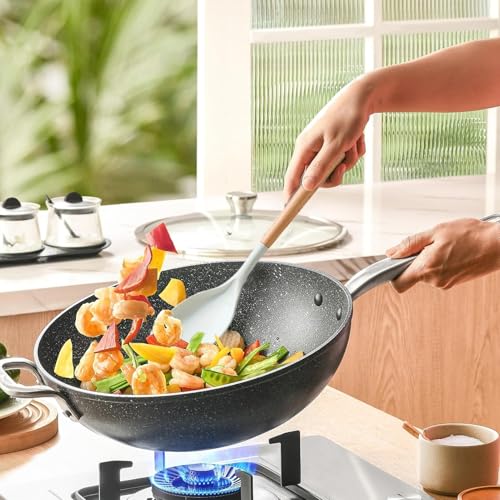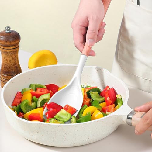 Cooking Spoon Nonstick Cookware, Wooden Handle Soup Spoon, Heat-Resistant Spatula, Dishwasher Safe Kitchen Utensils for Cooking, Mixing, Scraping, Baking
