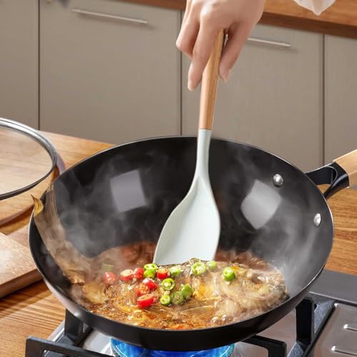 Spécification: Cooking Spoon Nonstick Cookware, Wooden Handle Soup Spoon, Heat-Resistant Spatula, Dishwasher Safe Kitchen Utensils for Cooking, Mixing, Scraping, Baking