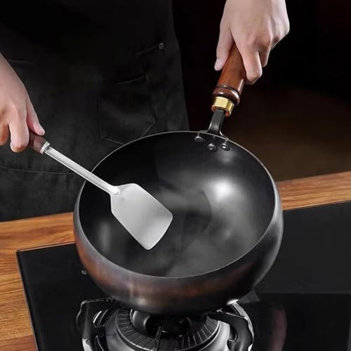 Versatile Cast Iron Wok Pan for Every Meal: This non-stick cast iron wok even heat distribution and excellent retention, ideal for stir-frying, sautéing, deep-frying, and more in both home and restaurant kitchens.