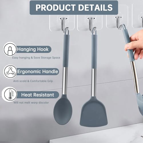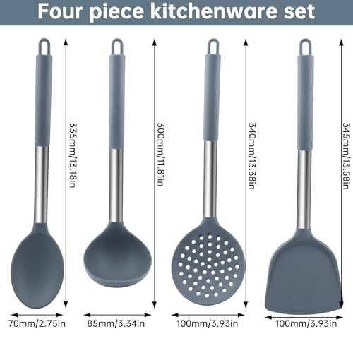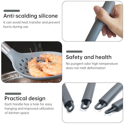 JNZLT Lot de 4 ustensiles de cuisine en silicone pour mélanger et servir (cuillère à soupe, passoire, pelle chinoise, cuillère large) avec 4 crochets