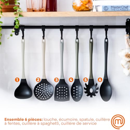 Spécification: MasterChef Ustensiles de Cuisine, Accessoire Antiadhésive Anti-Rayures et Résistante à la Chaleur Pattiserrie a Coffret Culinaire, Gris Rateau a Crepe, Louche, Cuillères, Spatules et Palettes