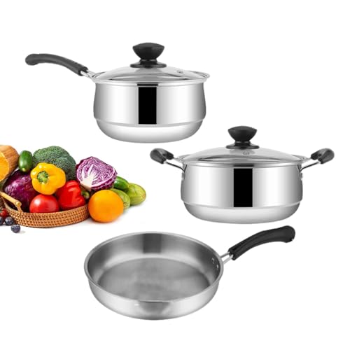 Non Stick Pots and Pans Set, 3pcs Stainless Cookware, Durable Design 9.44×7.08in, Kitchen Cooking Pot, Frying and Sauce Pans Set for Simmering Sautéing