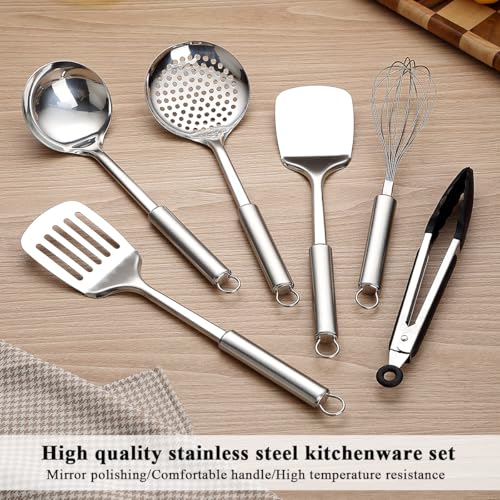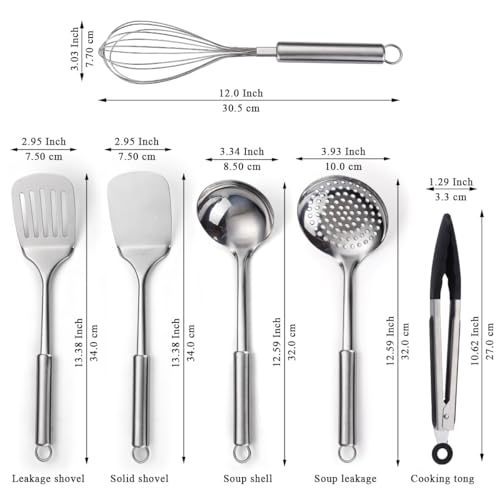 Spécification: ReaNea Ensemble d’ustensiles de cuisine en acier inoxydable 6 pièces comprend un ensemble de spatules en métal, une écumoire, une louche, une pince, un fouet, des gadgets de cuisine essentiels