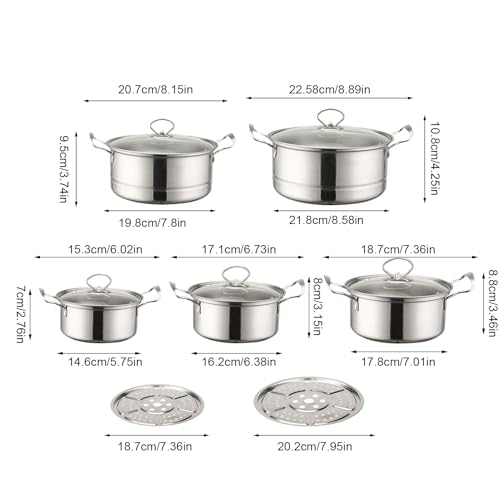 Featuring induction compatibility, this saucepan set suits both residential and commercial kitchens. From stewing hearty dishes to preparing soups and steaming vegetables, it delivers consistent results. Crafted as a complete cookware kit, it meets the demands of daily cooking while offering adaptability for multiple culinary techniques and recipes.