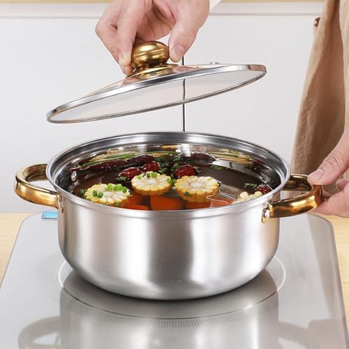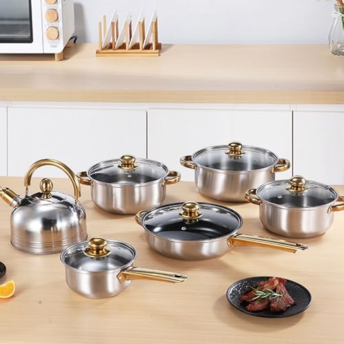 [FASHIONABLE DESIGN]: Featuring golden handles, this stylish and sturdy cookware set is -resistant, easy to clean, and ensures long-lasting use.