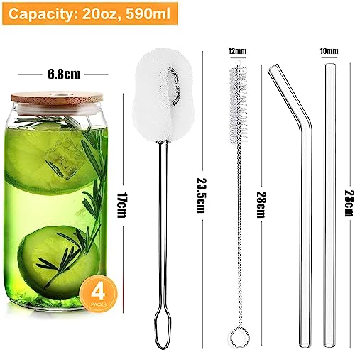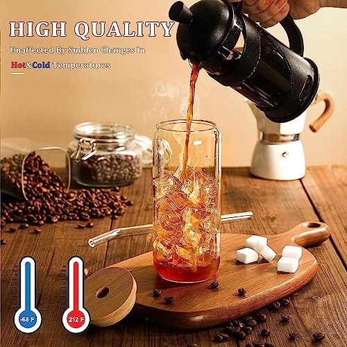 10 Pièces Verres Canette à Bière Set, 4Pcs 20oz /600ml Gobelets en Verre Glacés en Forme de Boîte avec 4Pcs Couvercle et Paille, 2Pcs Brosses- pour Cocktail Whisky Milkshake Café Thé Soda