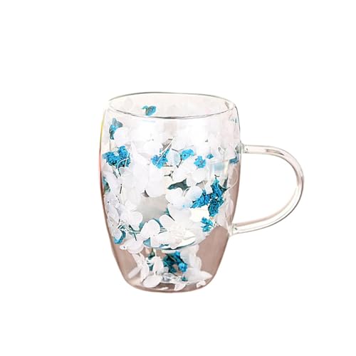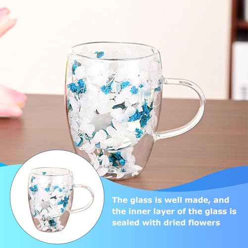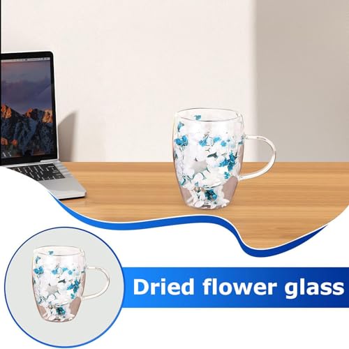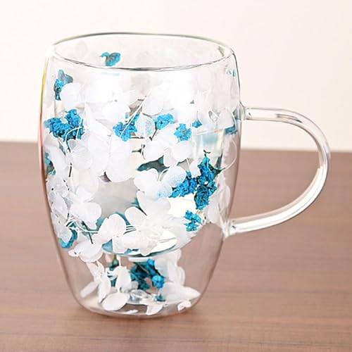 Générique Cups with Dried Flowers, 350ml Double Walled Clear Coffee Cup with Handle, Drinking Cups, Beverage Glasses for Hot & Cold Drinks, Blue Crystal, Green Crystal, Colorful, Glass, 8.5×11.5cm