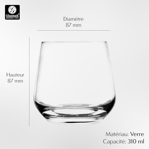 Spécification: Glasmark KROSNO 1992 Ensemble De 6 Pièces 310 ml Verre Bas Convient Au Lave Vaisselle Résistant Eau Jus Boissons