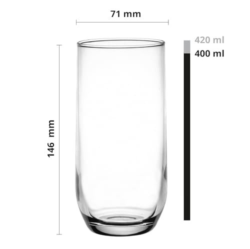 Nos verres à boire ont été fabriqués par des verreries expérimentées en Pologne. Hauteur: 14,6 cm, Diamètre: 7,1 cm, Capacité de stockage (ml): 400 ml, Matériel: Verre, Convient pour le lave-vaisselle : Oui.