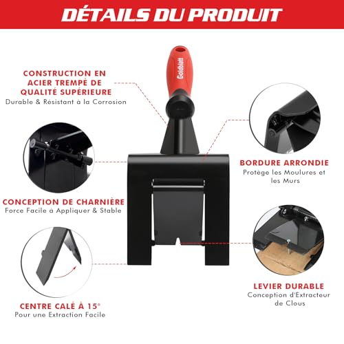 Extracteur de Garniture pour Plinthe, Pieds-de-biche, Barres de Levier, Outil de Retrait pour Enlever les Planchers en Bois, Boîtiers de Porte, Carrelage, Clous