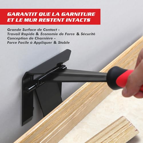 Garniture Précise et Pfficace : Par rapport aux outils traditionnels encombrants, cet outil de dépose offre une surface de contact plus large, plus plate et plus étendue. Il est doté d’un centre en forme de coin intégré, qui améliore l’efficacité de la dépose tout en évitant d’endommager les moulures et les murs
