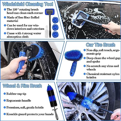 【Kit de nettoyage de voiture professionnel 26 pièces en 1】équipé de 5 * ensemble de brosses de détail, 4 * brosses de forage, 3 * brosse métallique, 2 * brosse de nettoyage de ventilation, 1 * brosse de roue, 1 * brosse à pneu, 1 * poignée amovible, 4 * housse en tissu absorbant l’eau et un flacon pulvérisateur de 100 ml, 1 * brosse à plumeau, 1 * serviette, 1 * gant de lavage de voiture, 1 * sac de rangement.Excellent achèvement de tous les travaux requis pour les détails externes et internes!