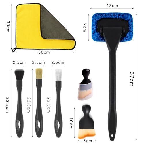 【Ensemble de brosses de nettoyage de voiture 】: comprend 3 brosses de nettoyage, 2 brosses de détail, 1 chiffon en microfibre pour voiture. 1 brosse de pare-brise avec chiffon de remplacement. Peut répondre à divers besoins de nettoyage de voiture. Rendez votre voiture plus propre et bien rangée. léger, facile à transporter.