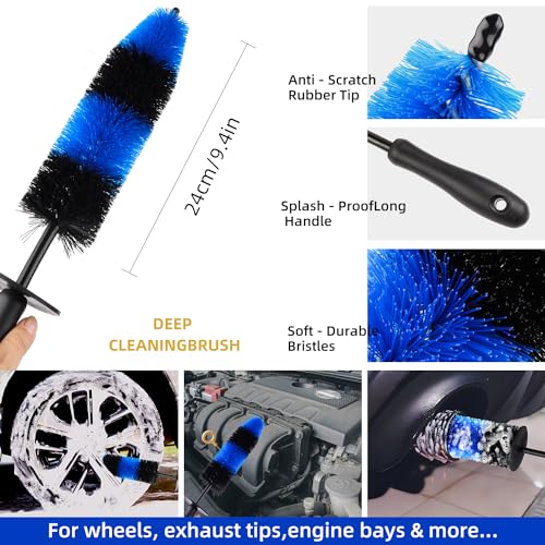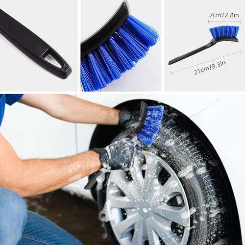 Nettoyage facile des pneus : l’ensemble dispose d’une brosse à pneu à long manche de 43,2 cm avec tige en aluminium flexible et filament composite PU. Il permet une rotation à 360° et atteint en profondeur la roue et les rayons sans rayer les jantes. Il comprend également une brosse de nettoyage pour pneus/roues à main courte avec des poils doux et non abrasifs et une poignée ergonomique pour une utilisation confortable.