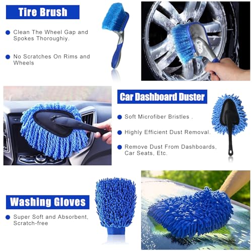 Large champ d’application : Ce kit d’entretien automobile entièrement équipé est parfait pour le nettoyage intérieur et extérieur de votre voiture ainsi que pour le nettoyage ménager quotidien. Vous pouvez nettoyer chaque coin efficacement et il peut être utilisé pour nettoyer les pneus, les tapis, les paillassons, les sols de la maison, les carreaux, les motos, les vélos et plus encore. C’est aussi un cadeau parfait pour vos amis ou les amateurs de voitures