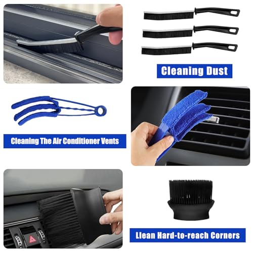 Autres outils de nettoyage : contient 1 brosse de climatisation, adaptée au nettoyage des fentes d’aération.1 crochet pour pneus pour enlever les résidus tels que les petites pierres des fentes des pneus de voiture. Sont également inclus 1 pelote de laine autocollante, une trousse à outils et d’autres outils