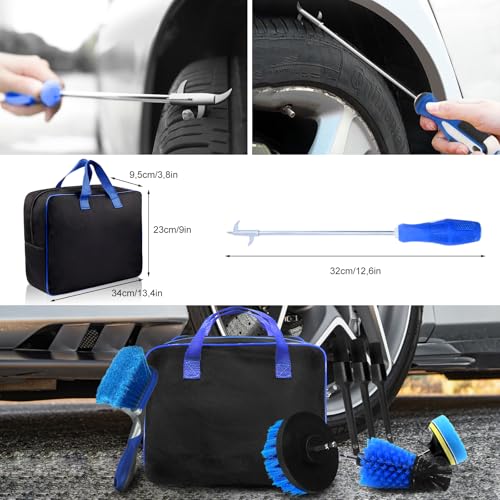 Kit Nettoyage Voiture, 30 Pcs Kit de Brosse Nettoyage Voiture pour l’intérieur et l’extérieur, Kit de Lavage de Voiture Inclure Brosses, Éponges de Polissage, Sac de Transport Pratique Inclus