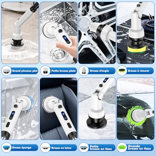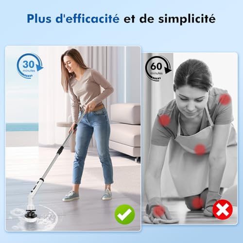 8 têtes 3 angles brosse nettoyage electrique: Cette brosse rotative nettoyage comporte trois angles réglables (90°, 135°, 180°) qui révolutionneront vos rituels de nettoyage. Cette puissante brosse à récurer électrique facilite le nettoyage et vous évite de vous pencher ou de forcer. Développé spécifiquement pour les personnes souffrant de problèmes de genoux, de dos ou d’arthrite, il améliore votre style de vie et contribue à une ambiance de vie encore plus invitante