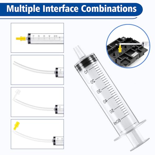 [ Contenu de l’emballage ] 200 ml de nettoyant pour buses, 2 tubes de nettoyage des buses en silicone, 2 seringues de nettoyage de la tête à pression de 5 ml, 2 coudes, 2 petits bouchons en caoutchouc, 2 grands bouchons en caoutchouc, 2 manuels d’instructions, 2 gants.
