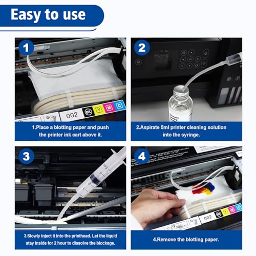 [Avantages ] Le kit de nettoyage des têtes d’impression contient une variété d’outils combinés. Ce nettoyeur de buses convient à toutes les marques d’imprimantes à jet d’encre. Avec d’excellentes performances de nettoyage, il dissout et nettoie l’encre obstruée ou sèche dans la tête d’impression, élimine les stries verticales, les stries horizontales, les problèmes d’impression de texte ou les impressions incomplètes, lisse l’encre et améliore la qualité d’impression.