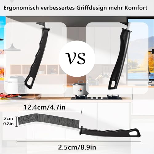 Utilisation polyvalente : que ce soit dans la cuisine (évier, cuisinière), dans la salle de bain (rails de porte de douche, brosse de nettoyage de salle de bain), sur les fenêtres ou les fentes de voiture, notre kit de brosses de nettoyage (brosse longue et courte pour le nettoyage) efface la saleté dans les endroits difficiles d’accès. Elle convient comme brosse à joints pour carrelage, brosse de nettoyage des coins à poils durs, brosse de nettoyage des coins durs et même comme brosse de nettoyage de canalisation, tandis que le chiffon permet d’essuyer les surfaces lisses.