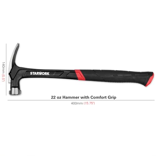 TRUE MECHANIC™ Marteau de clouage avec poignée confortable, tête en acier et manche en acier, anti-vibration, griffe de déchirure de 623g