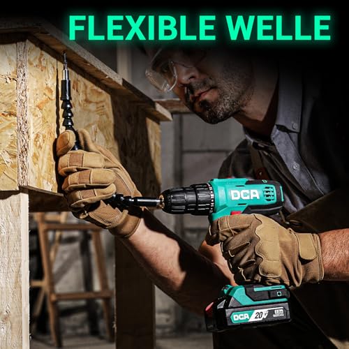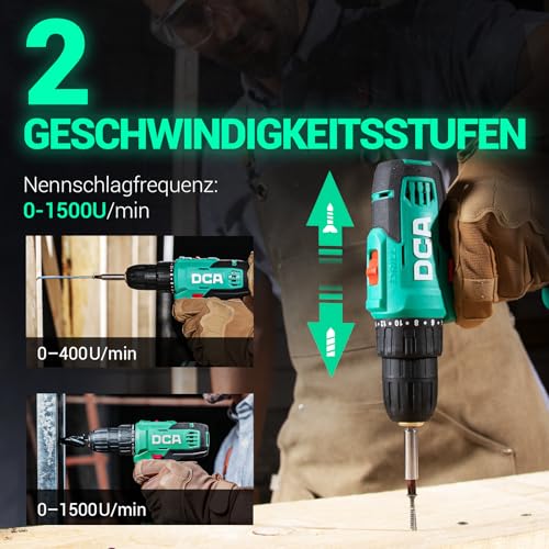 DCA Perceuse-visseuse sans fil, couple de 40 Nm, mandrin auto-serrant de 10 mm, perceuse électrique avec batterie 2,0Ah et chargeur, 18+1 positions, kit perceuse 20V 25 pièces, modèle ADJZ2035