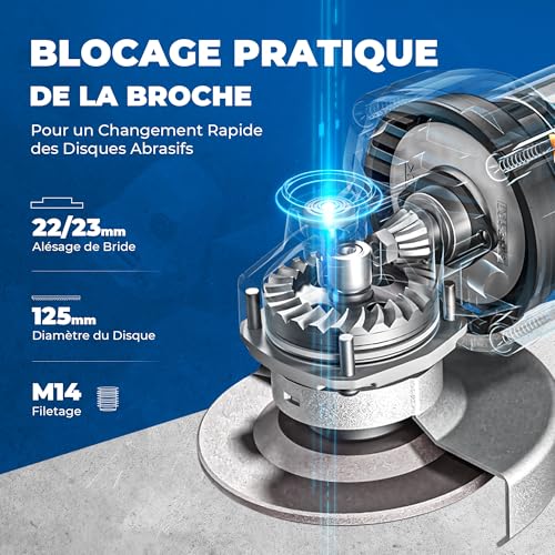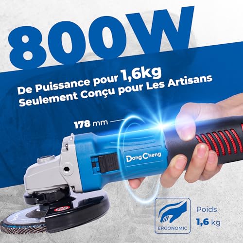 Haute Performance : Moteur cuivre 800W et disque 125mm. Cette meuleuse offre 11 800 tr/min, idéale pour meuler, couper et polier le métal avec une longue autonomie