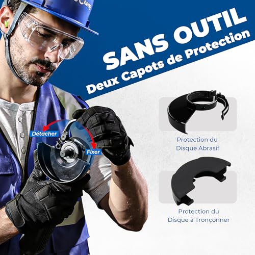 Utilisation Confortable : Capot de protection à changement rapide sans outil pour alterner entre meulage et coupe en sécurité. Poignée auxiliaire 2 positions pour gauchers et droitiers