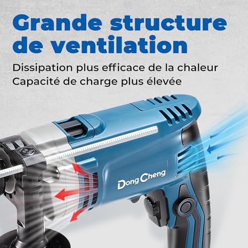 DongCheng Perceuse à percussion Marteau perforateur 710W,13 mm mandrin de perçage Perceuse à percussion 45,000 IPM, 3000 RPM avec 15 couronnes de perçage pour métal, bois et béton
