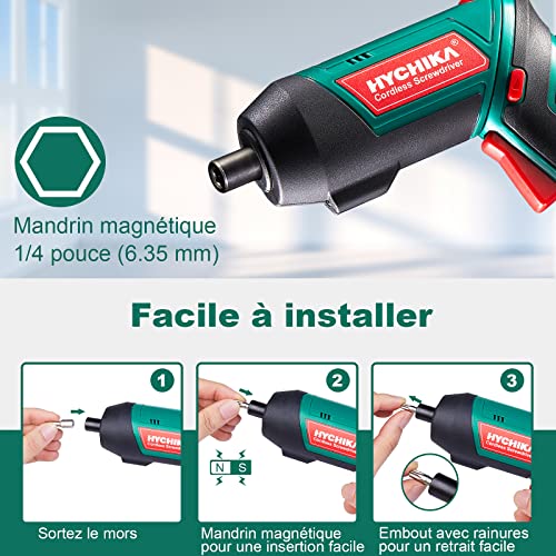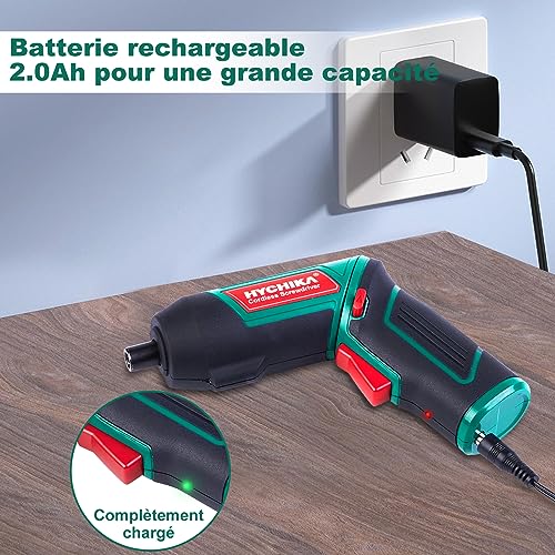 HYCHIKA Visseuse Sans Fil 6 Nm, Visseuse Devisseuse Sans Fil 2000mAh 3.6V avec 20 Accessoires, Lampe LED, Mandrin Magnétique, Câble de Chargement USB