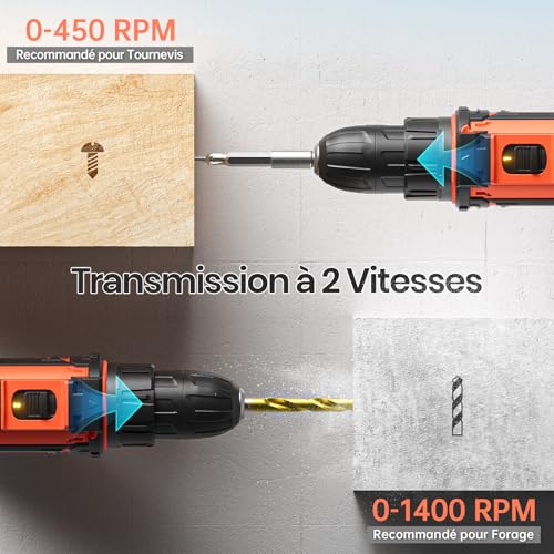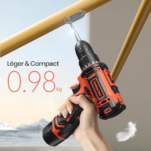 Compagnon de travail efficace: Comparée aux outils traditionnels, cette perceuse visseuse sans fil est plus efficace et plus pratique. La petite perceuse visseuse sans fil (batterie incluse) ne pèse que 0,98 kg. Sa petite taille permet de l’utiliser d’une seule main. Rejetant la fatigue du travail, elle vous permet d’assembler des meubles sans effort. Très pratique pour les femmes et les personnes âgées.