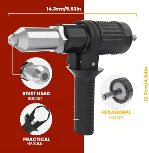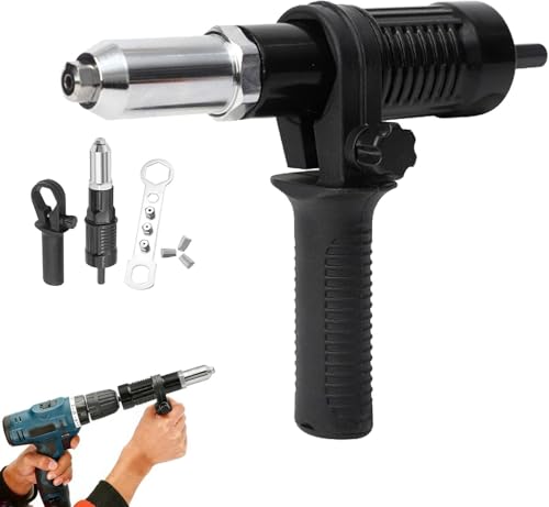Professional Electric Rivet Gun Adapter Kit, with Removable Plastic Handle & 4 Rivets Heads, Cordless Electric Drill Riveter Insert Nut Tool, Cordless Rivet Gun Power Drill Adaptor Kit