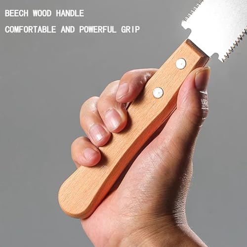 Matériau de qualité supérieure : notre scie à main est fabriquée en acier inoxydable SK5, plus dure et durable. Notre scie à tirer avec poignée en bois confortable et antidérapante. La lame est fixée sur la poignée avec 2 boulons pressés, plus durable et robuste.