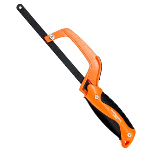 Scie à métaux compacte en métal, scie à métaux compacte à main – Scie à métaux à main en métal de 11 pouces – Outils manuels compacts haute tension pour la coupe, le travail du bois et le métal