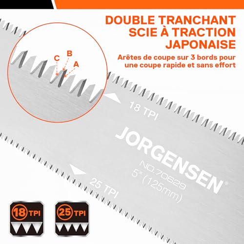 Scie Japonaise, Scie à Main avec Double Tranchant de 18/25 TPI, Scie à Traction à Double Face avec Poignée Ergonomique, Lame Remplaçable SK5 125 mm, Scie Japonaise Menuisier pour bois