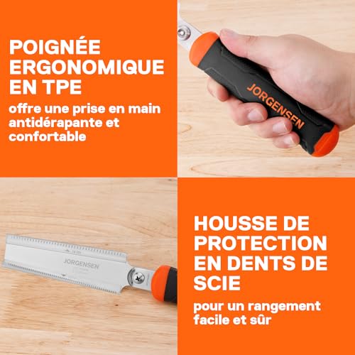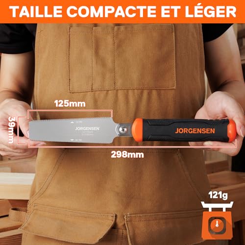 Poignée ergonomique: Dotée d’une poignée antidérapante en TPE, cette scie japonaise de précision offre une prise en main confortable. Sa conception ergonomique améliore le confort en réduisant considérablement la fatigue de la main et les vibrations pendant la coupe